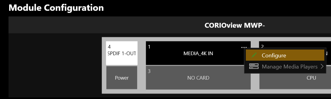 Find the Streaming media and 4K playback module that you want to set up, and select > Configure.
