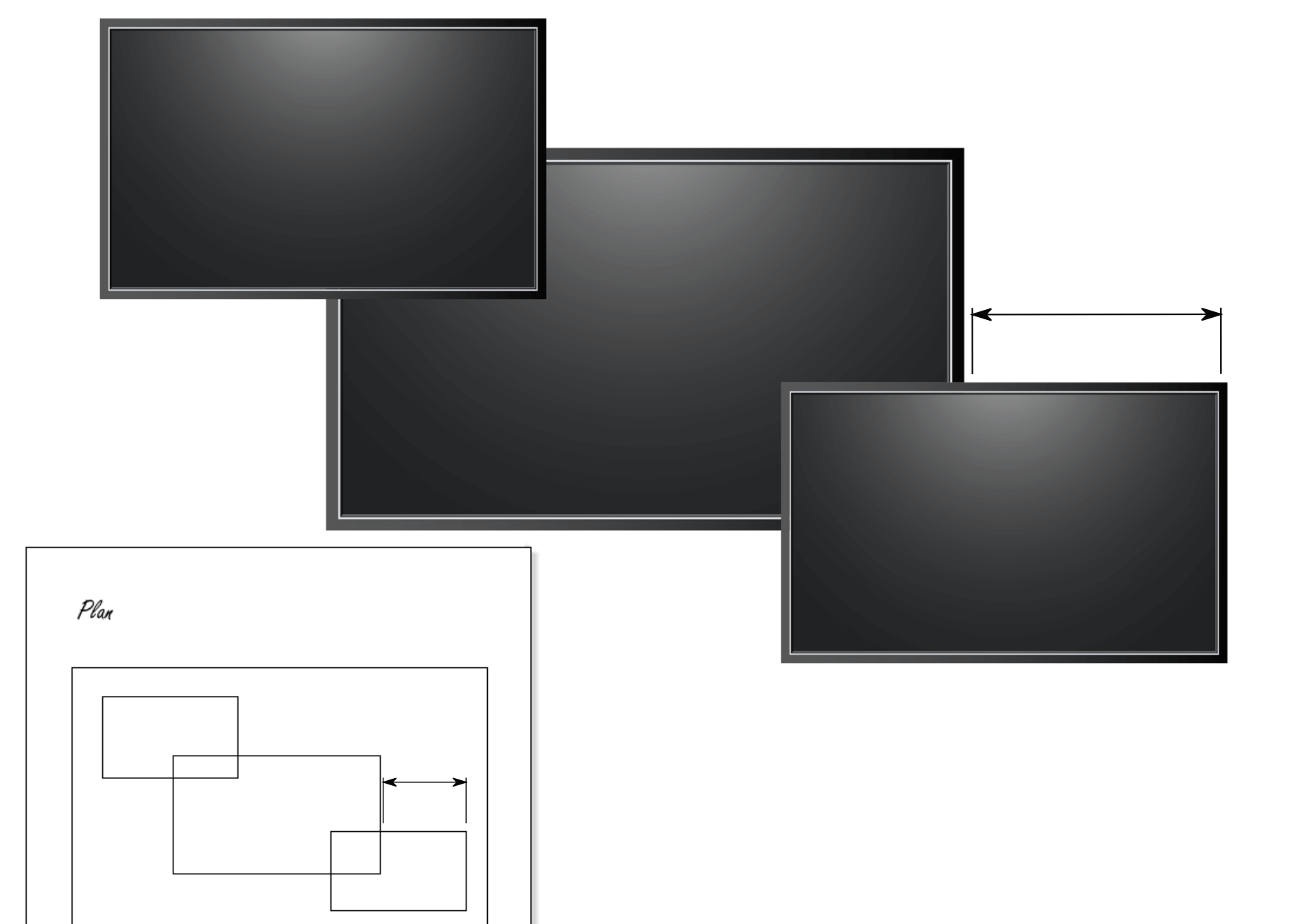 Use your plan to help you position your displays, which can be screens and/or projectors.