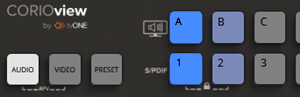 In audio mode, buttons 1 to 8 and A to H select sources to listen to. Both sets of buttons select the same sources, for example, you can select source 1 with button 1 or button A.